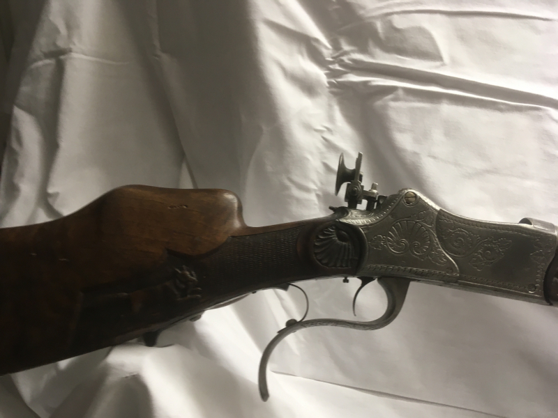 Verkaufe alten schußbereiten Zimmerstutzen, ca) Jhr. 1850 in gutem Zustand. Er wurde letztes Jahr von einem Büchsenmacher überholt.