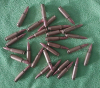 Hier zur Auktion eine Deko-Patrone 5,7 x 28 für die belgische Maschinenpistole FN P90. Die Patrone wurde verschossen,Zündhütchen abgeschlagen.Die leere, unbeschädigte Messinghülse wurde mittels Voll-Kalibriermatrize Rekalibriert und ein neues FMJ-Geschoss mit Bleikern eingesetzt.Im inneren befindet sich ein 4,5mm Metallkügelchen.Keine Grfahrstoffe enthalten.Verkauf ausdrücklich nur für Deko Zwecke.Nicht als Exerzier-Patrone, auch wenn die Patrone in das Patronenlager passt.Bodenstempel: 5,7x28 FNB 22