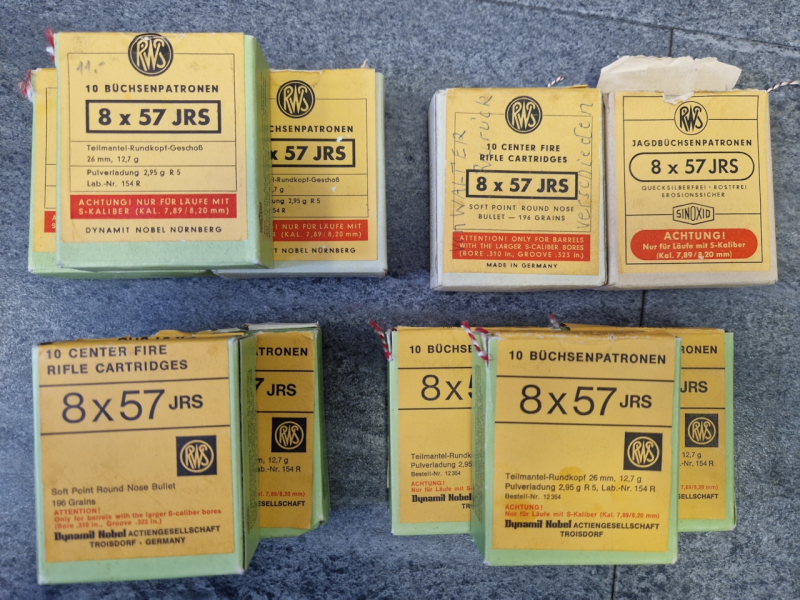Zum Verkauf aus einem Nachlass stehen insgesamt 100 Patronen von RWS im Kaliber 8x57 IRS,