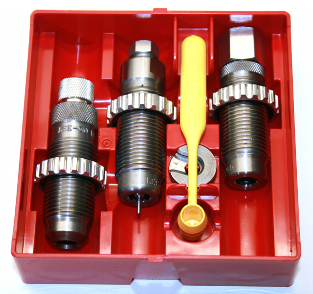 Die Lee Pistolen-3-Matrizen-Set enthält eine Vollkalibrier Hartmetall-Matrize,