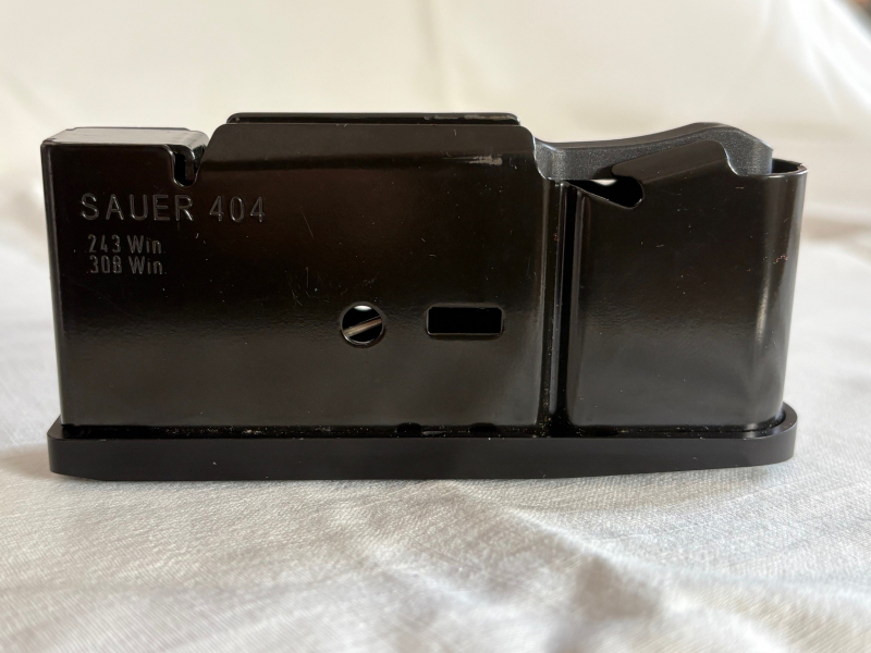 Verkaufe wegen Überbestand ein so gut wie neues, sehr wenig benutztes 3-Schuss-Magazin für eine Sauer 404, für die Kaliber .308 win und .243 win. Das Magazin ist aus Metall.