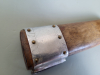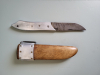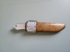 Grabenmesser aus 2 WK Zeit , vermutlich Frankreich wegen Stempel auf den Erl . Metall Griff , Hand gefertigte Holz Scheide . Zustand mit alterspuren aber in gute Kondition .