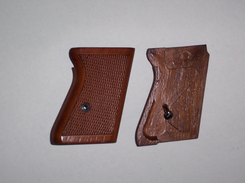 Sie bieten auf die abgebildeten PPK Holzgriffschalen,sie sind pr die "Scharfen" Waffen,keine Gaswaffen.Die Original Schraube ist auch mit dabei.