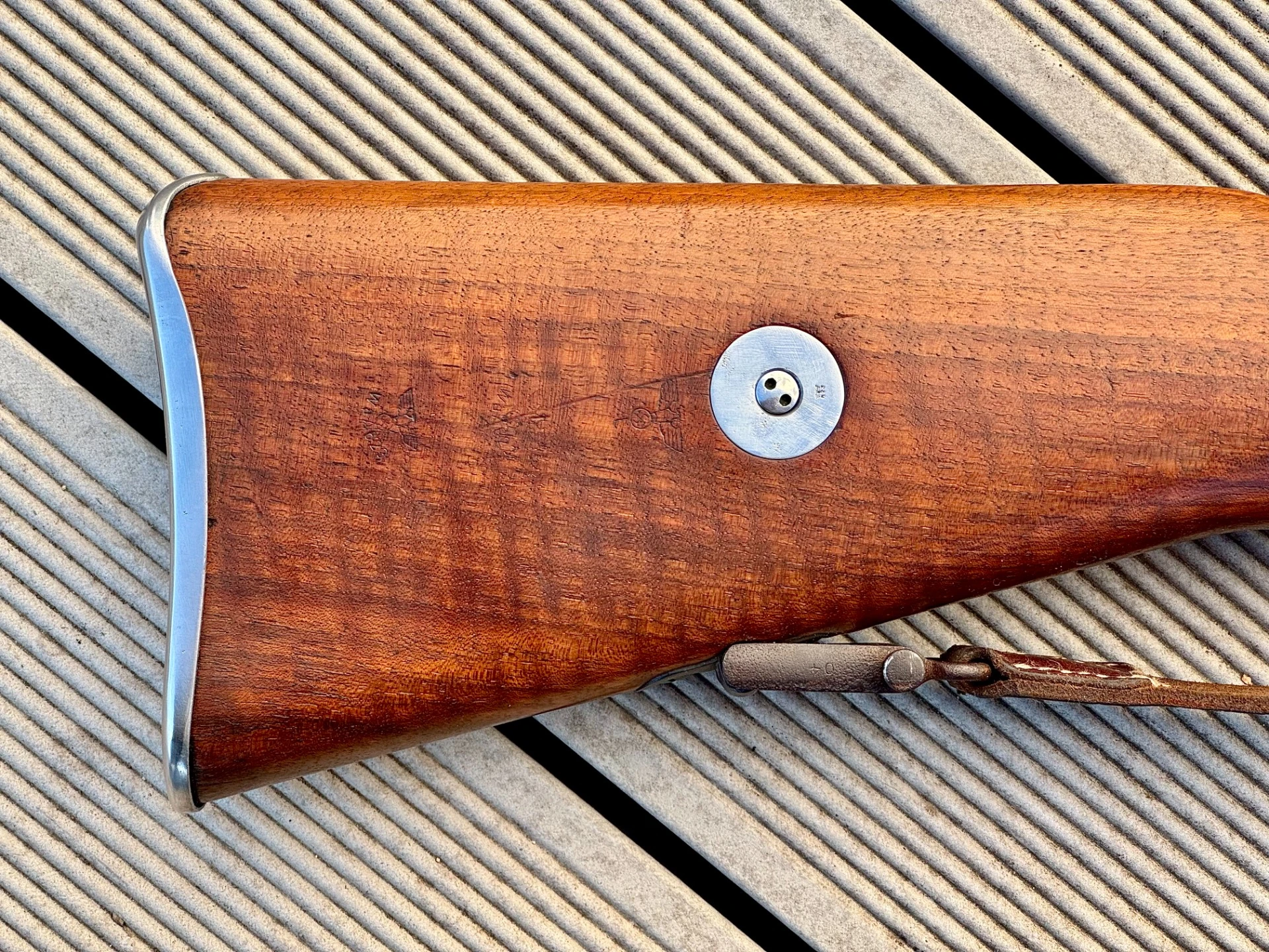 – Schaft aus hochwertigem Nussbaumholz mit vollständiger Originalstempelung, nahezu ohne Druckstellen