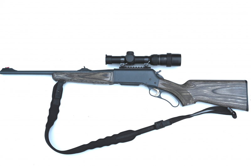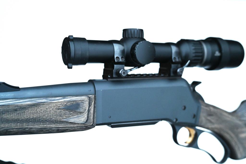 Unterhebelrepetierer, Unterhebel-Repetierbüchse, Jagdgewehr, Jagdwaffe mit außenliegendem Hahn, Unterhebelspannung, herausnehmbaren Magazin und ZOOM-Zielfernrohr BURRIS Four Xe 1-4x24, Absehen 4 NK (Fadenkreuz) mit in 11 Stufen dimmbarem Leuchtpunkt: