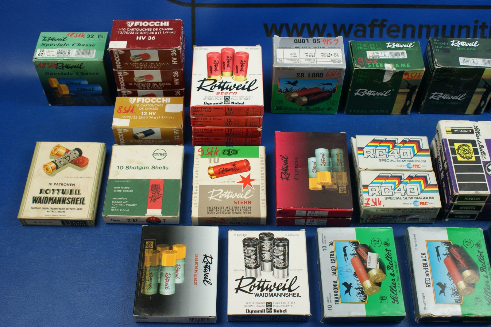 Lagerspuren an den Verpackungen und Patronen vorhanden. Patronen weißen teils Roststellen bzw. Korrosionsspuren auf.
