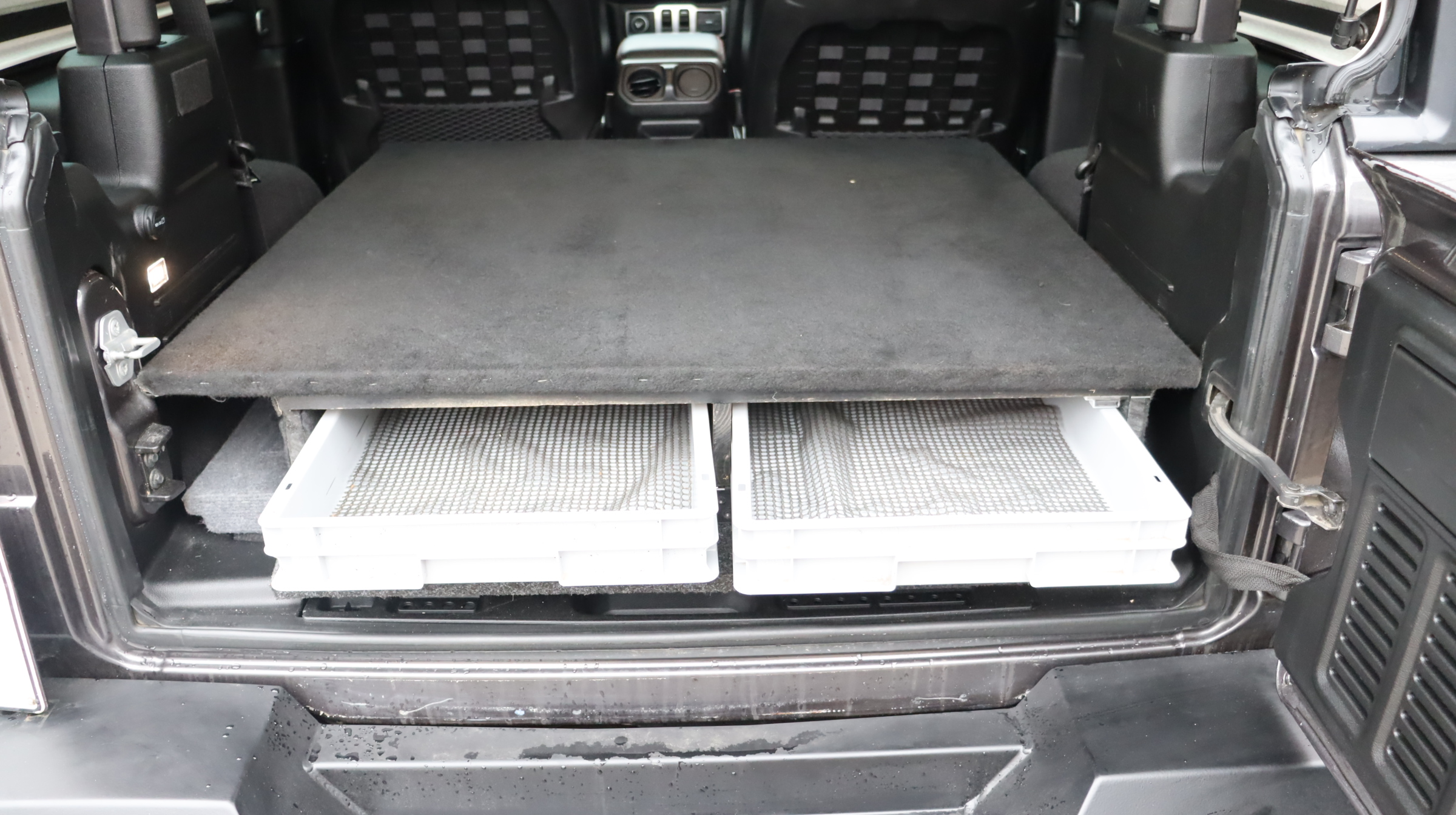 Die Rückbank ist vorhanden und der Umbau (Schubfächer) kann problemlos entfernt werden.