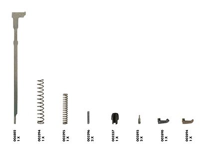 Ersatzteil-Set für Match - Verschlüsse. Besteht aus folgenden Ersatzteilen: 1 x Schlagbolzen (006802), 1 x Druckfeder 0.85x7.3x48 (003294), 1 x Druckfeder 0.85x4.8x34 (003295), 2 x Druckfeder 0.45x2x15 (003296), 1 x Vordere Federstütze (003237), 2 x Federbolzen (002893), 1 x Auszieher (002890), 1 x Patronenhalter (002894)