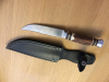 Jagdmesser mit Lederscheide, Top Zustand, auf der Klinge sind ein paar kleine Schrammen, Klingenlänge 13 cm, schwere Ausführung.