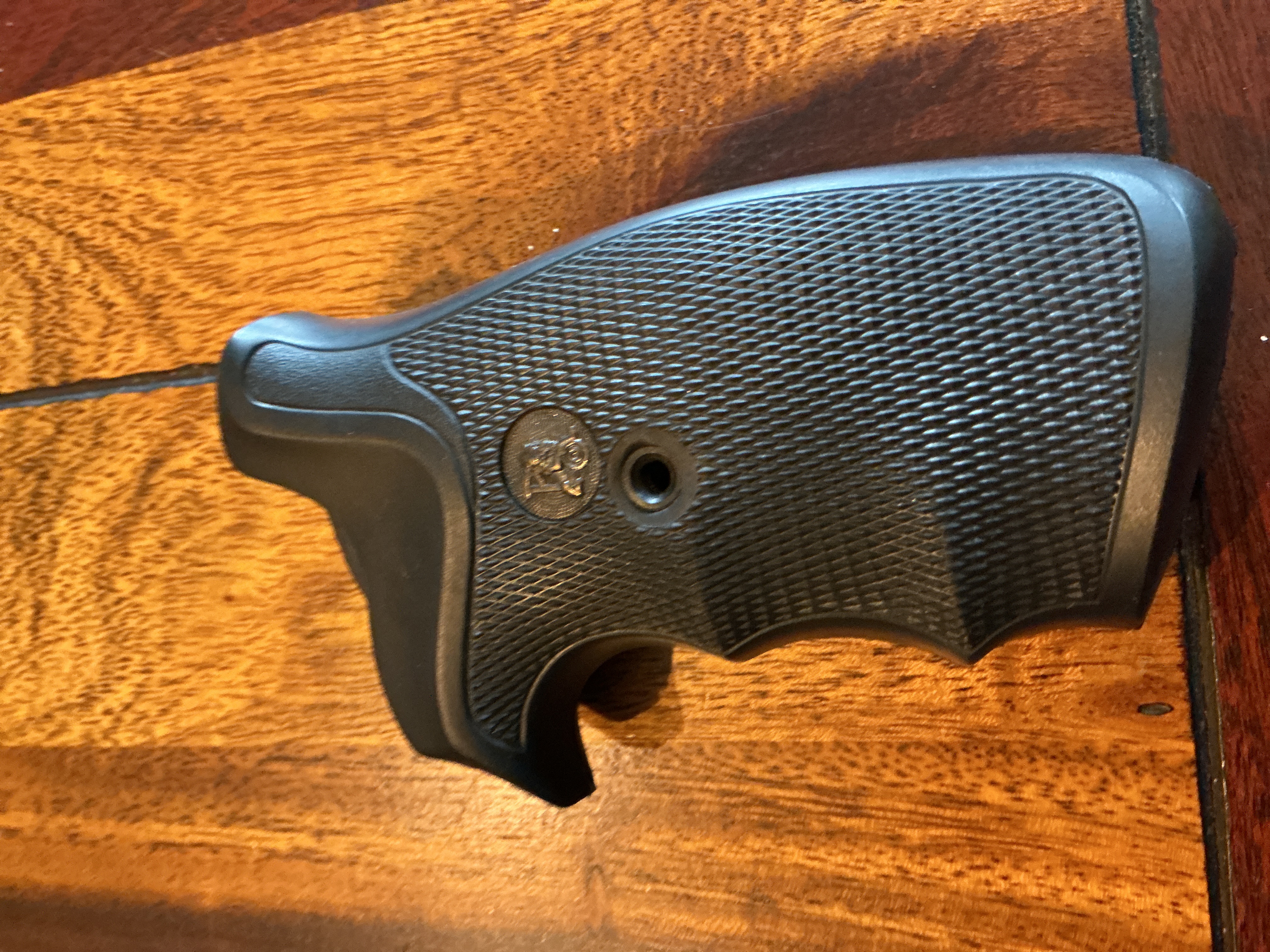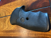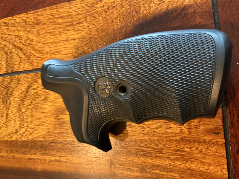 Griffschalen der top Firma Pachmayr Gummigriff K Modell an einer 357 Mag. Smith Wesson 686 , 2 Wochen montiert gewesen, liegt mir nicht so, leider ist die kleine Schraube aus der Mitte verloren gegangen.