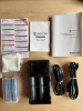 – natürlich das Gerät, –ein Ladegerät mit USB-Kabel, – zwei Akkus, – eine Tragetasche mit Gurt, – ein Linsenreinigungsstuch, – eine Bedienungsanleitung.