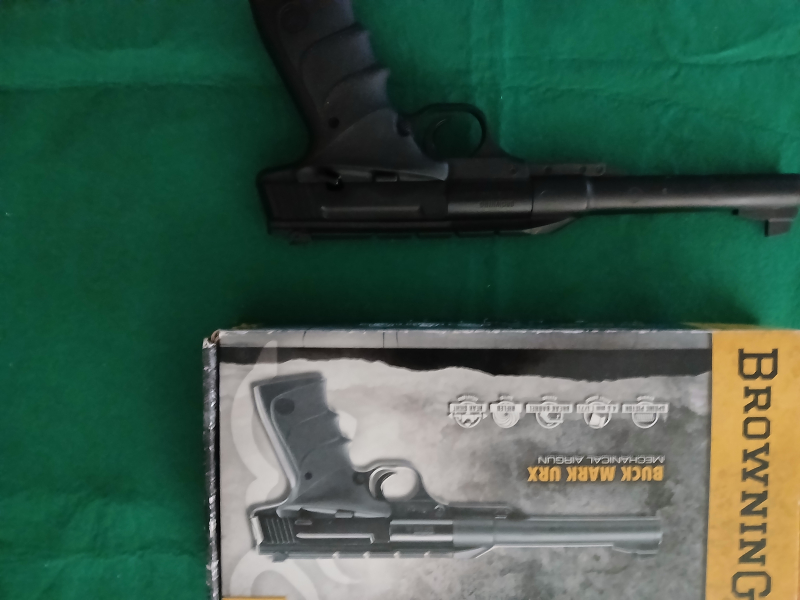 Ich verkaufe eine gebrauchte Knicklauf-Luftpistole Browning Buck Mark URX Kaliber 4,5 mm mit Originalverpackung. Die Waffe funktioniert einwandfrei, Der Verkauf erfolgt privat. Sämtliche Gewährleistungen, Rücknahmen und Erstattungen sind ausgeschlossen.