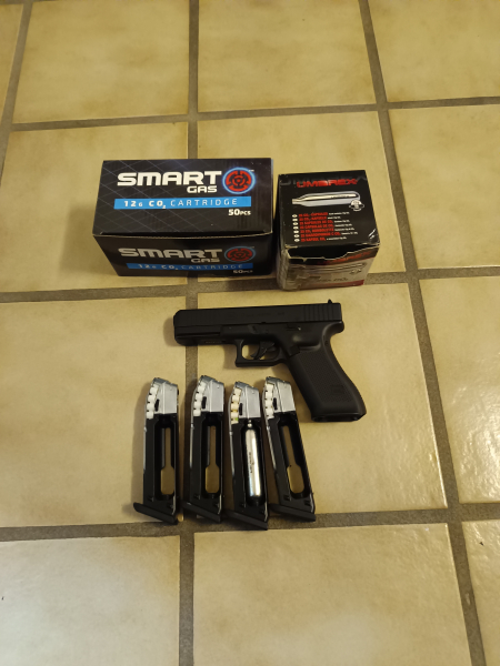 Sie bieten hier auf eine neuwertige Glock 17 Gen5 Co2-Pistole Kaliber 4,5 mm Diabolo Blowback inkl einen Magazin.