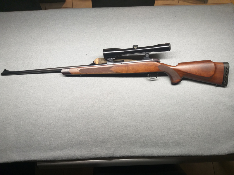 Die Waffe ist technisch in einem einwandfreien Zustand und besticht durch eine hervorragende Schussleistung. Montiert ist ein hochwertiges Klassik-Zielfernrohr von Schmidt & Bender 6x42 (Absehen 1) – bekannt für seine Lichtstärke und Zuverlässigkeit.
