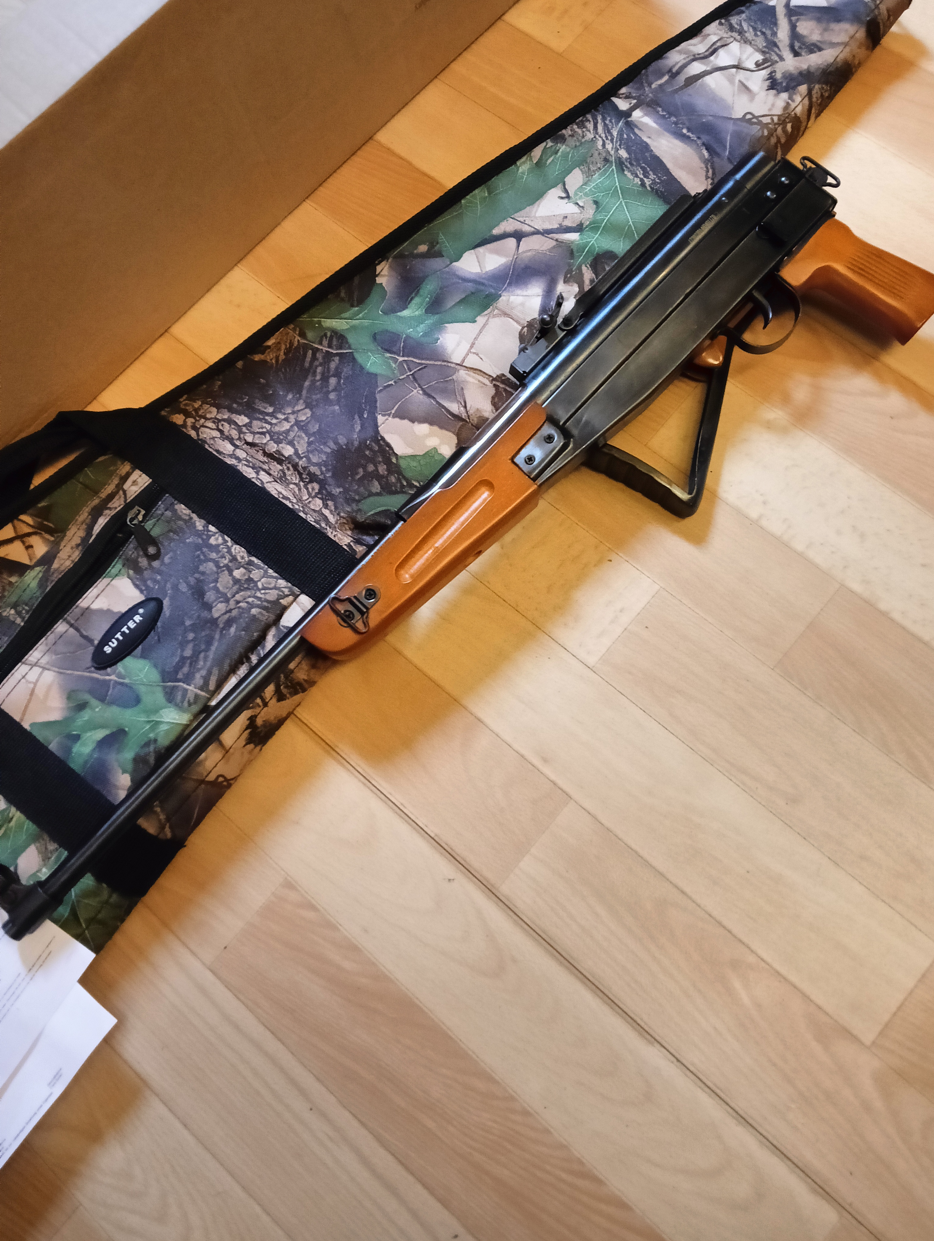 Luftgewehr First Strike SP47 in neuwertigem Zustand zu verkaufen. Nur sehr wenige Schüsse abgegeben und ansonsten trocken in Gewehrtasche im Schrank aufbewahrt. Sehr massives Luftgewehr mit Seitenspanner in AK47 Optik, seh cool. Systemkasten und Spannhebel sowie Gewehrlauf inklusive Kimme und Korn alles aus Stahl,Vorderschaft aus echtem Holz, hinterer Schaft aus Stahlrahmen und Plastik, Griffstück Plastik. Der Hinterschaft lässt sich einklappen. Das Gewehr schießt erstaunlich zielgenau, und hat eine mächtige Schießleistung. F-Zeichen ist vorhanden. Inklusive Originalkarton, tarnfarbener Gewehrtasche, einigen Diabolos, Bedinungsanleitung und Originalrechnung (sind noch 2 Monate Garantie drauf). Wie immer ohne Garantie oder Rücknahme. Paypalzahlung (nur paypal an Freunde ohne Gebühren) oder Überweisung möglich.