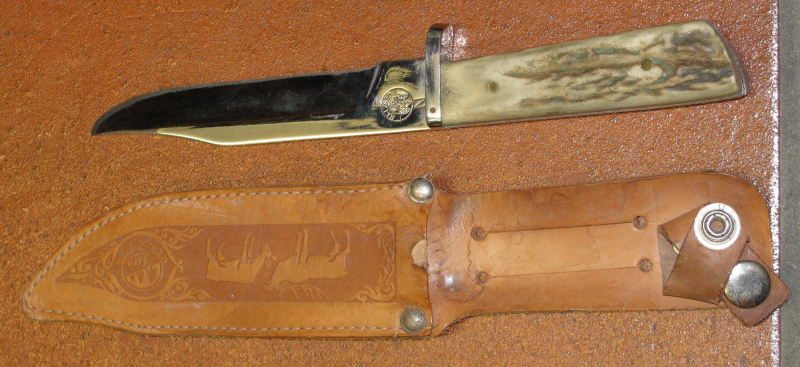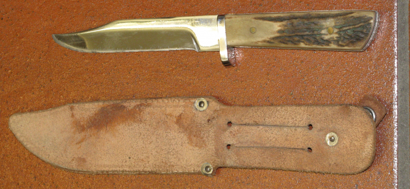 Zum Verkauf kommt ein Jagdmesser LAS OLSZTYN mit Horngriff und Lederscheide