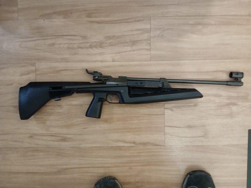 Das gebrauchte Luftgewehr in Kaliber 4,5 mm Diabolo hat Gebrauchsspuren, schießt aber einwandfrei. Es handelt sich um einen Seitenspanner mit herausziehbar5em Schaft. Vor der Lademulde des Einzelladers ist eine kurze 11 mm Prismenschiene vorhanden. Auf dem System ist das F-Zeichen eingeschlagen, dazu eine Seriennummer und irgendwelche kyrillischen Schriftzeichen. Eine Herstellerangabe gibt es nicht. Auf dem Schaft findet sich noch die Angabe "Made in Russia". Meiner Meinung nach ähnelt die Waffe der Baikal MP 60 C. Aber das ist nur meine Meinung. Der Verkauf erfolgt privat unter Ausschluss jeglicher Gewährleistung. Keine Rücknahme, keine Erstattung. Bitten nur bieten, wenn Sie damit einverstanden sind.