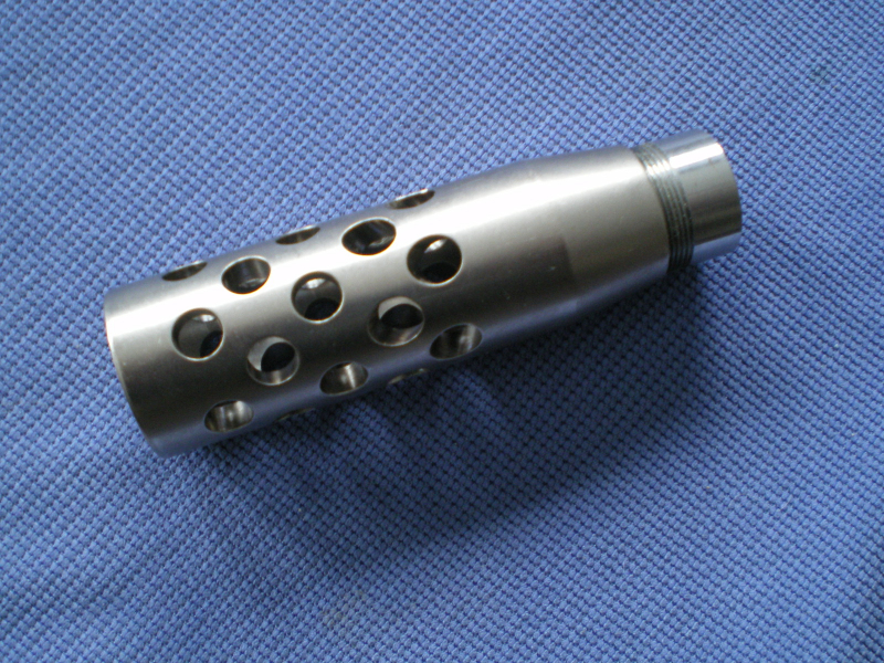 Verkaufe einen neuen Mündungsfeuerdämpfer für Pump-Action Flinten in Stainless.