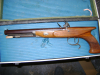 Ausgestattet ist die Pistole mit einstellbarer Kimme, Stecherabzug, gebräuntem, glatten Lauf (Cal. 45), Nussbaumschaft und buntgehärteten Metallteilen.
