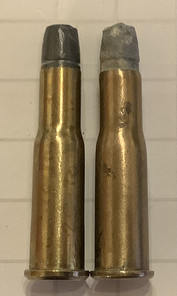 Hier zwei, vom Bodenstempel her, (vielleicht) nicht so gängige Versionen der .25-20 Winchester CF: Bodenstempel links U.M.C. .25-20 MARLIN.; rechts ELEY‘S 25/20 M. Beide Patronen sind delaboriert und enthalten keinerlei Gefahrenstoffe mehr, dafür aber Klapperkügelchen. Der Versand erfolgt per DHL Maxibrief. Für den Versand ins europäische Ausland, Porto bitte vor Ende der Auktion erfragen.