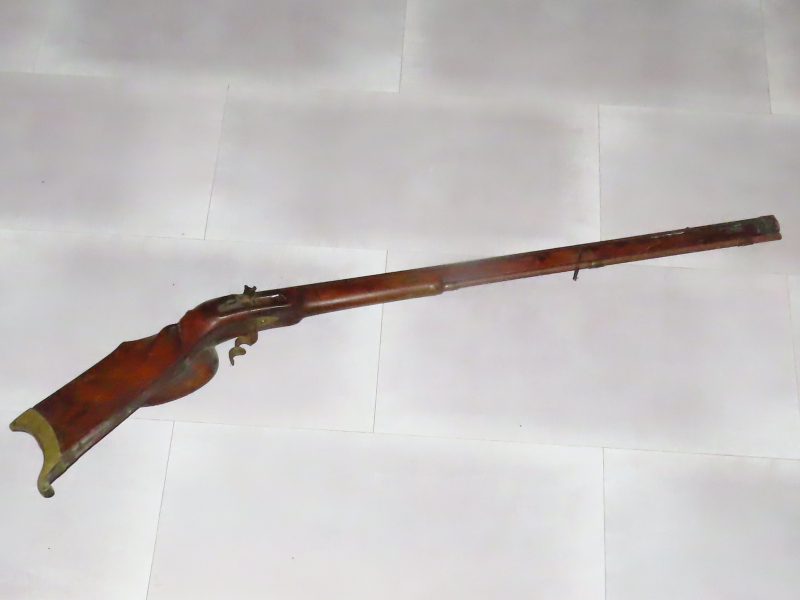 muss restauriert werden, das Schloss fehlt , das Gewehr hat zum Teil Beschädigungen , z. b vorne am Lauf, der Lauf ist korrodiert