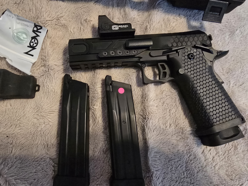 Hallo, biete hier eine Novritsch SSP-2, 6mmBB, Gas an, in schwarz. Die waffe hat Blowback, hat keine gebrauchspuren, wurde wenig geschossen, reine sammlerwaffe. waffe ist aus Metall mit polymer body. Mit dabei ein Waffenkoffer, red dot mit brücken montage und 3 magazine, eins ist leicht undicht, ist mit einem punkt makiert. Was aussieht wie Flecken auf der waffe sind nur Öl Spuren von der Pflege.