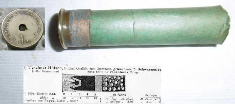 Angeboten wird 1 leere, ungebrauchte Collath-Schrothülse mit horizontaler Stiftzündung No.1, entspricht Kal.12. erhaben gestempelt: ( W.COLLATH FRANKFURT a.O 1 ) Fertigung vor 1928. Diese Hülse lagerte auf dem offenen Dachboden der Büchsenmacherei ERDELT in Neustadt/Haardt (Weinstraße). 100 Jahre haben eine Menge Schmutz hinterlassen, der noch nicht ganz entfernt ist.