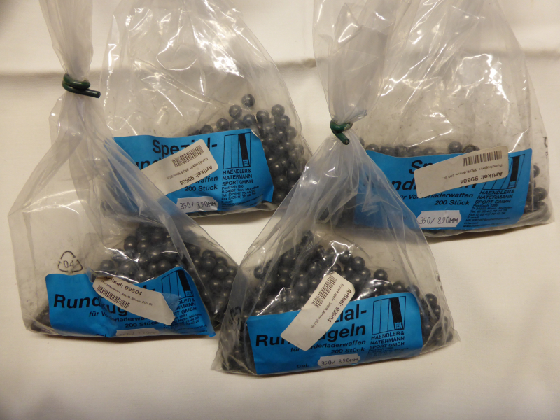 Verkaufe 800 St. Vorderlader Bleirundkugeln cal. .350 / 8,9mm,von Haendler & Natermann. Ware ist Neu, Siehe Bild.