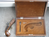 biete einen neuwertigen Derringer im Kal. .45 von "Ardesa (Spanien)" im Kasten mit eisernem Ladestock. So sehr selten angeboten. Alles neuwertig, Kasten im franz. Stil, natürlich mit Schlüssel. Derringer ist verm. ungeschossen, Verkaufsschild hängt noch dran. Von Sammler, Lag alles nur in der Vitrine.