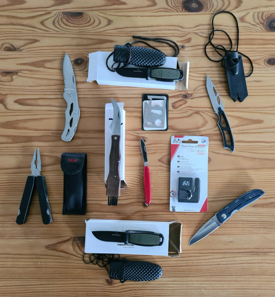 Konvolut an diversen Messern und Tools (und dazu gibt es noch einen Messerschärfer) - alle Artikel sind NEU bzw. NEUWERTIG bzw. GEBRAUCHT: Insgesamt sind es 10 Artikel!
