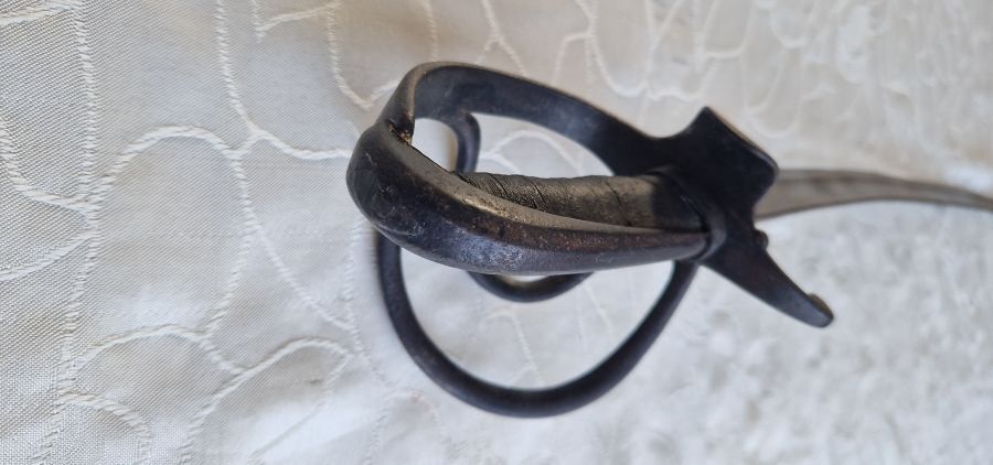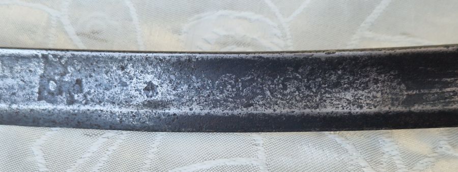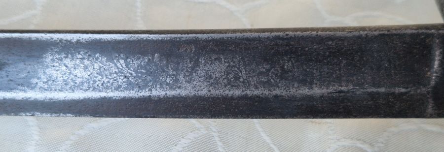 Gesamtlänge ca. 96 cm. Klingenbreite am Ansatz ca. 2,8 cm.