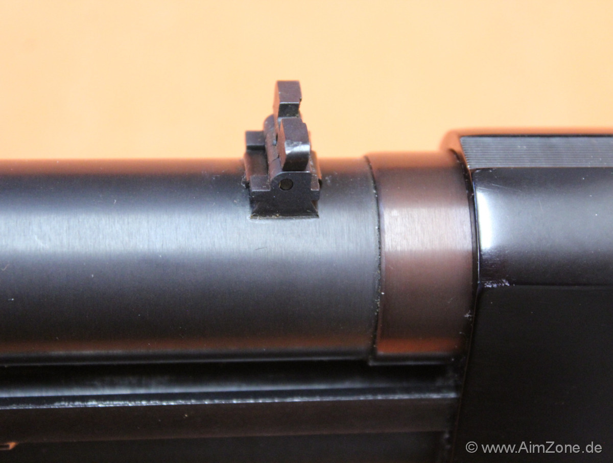 20" Lauf mit Cylinderbohrung/ Büchsenvisierung: Perlkorn/ Klappkimme, Alu Systemkasten, Holz-Vorderschaft/ -Schaft mit Riemenbügel, 8-Schuss Magazinrohr. Gebraucht-/ Sammlerwaffe (ohne Zusicherung von mangelfreier Funktion/ Präzision). *Differenzbesteuerter Artikel nach §25a UStG*