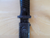 Auf der Klinge "P. Weyersberg 39/3574i, Klinge ohne Anschliff aber mit drei kleinen Kerben. Scheide leicht dellig.