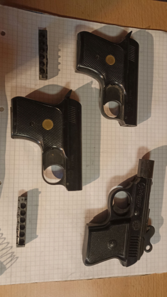 Biete ein Konvulut aus 3 Schreckschusspistolen an. Alle mit PTB Zeichen und gebraucht. Funktionsfähig aber da Privatverkauf keine Garantie und keine Rücknahme. Die EM-GE Pistolen sind beide Model 61, mit Schachtel, Abschussbecher, Magazin und einem Warnhinweispapier, nur eine Gebrauchsanleitung und eine Reinigungsbürste ist dabei. Die Record hat nur die Aufschrift 6mm. Siehe Bilder. Freie Waffen ab 18 Jahre. Bitte mit Ausweis nach dem Kauf nachweisen.