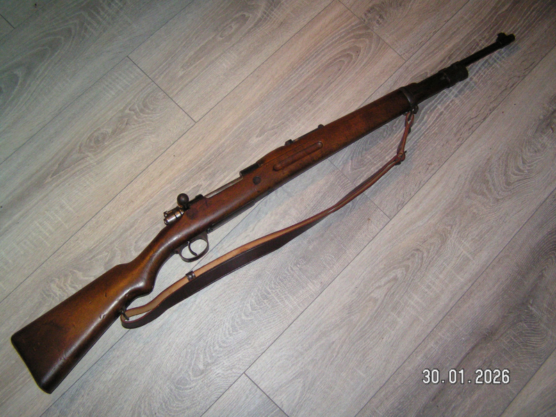 Aus einem Nachlass spanischer Repetierer im Kaliber 8x57 IS. Wurde nie geführt sondern als Sammelobjekt behalten. Der Schaft zeigt einige Dellen und Kratzer. Das Gewehr ist nummerngleich, mit Trageriemen.