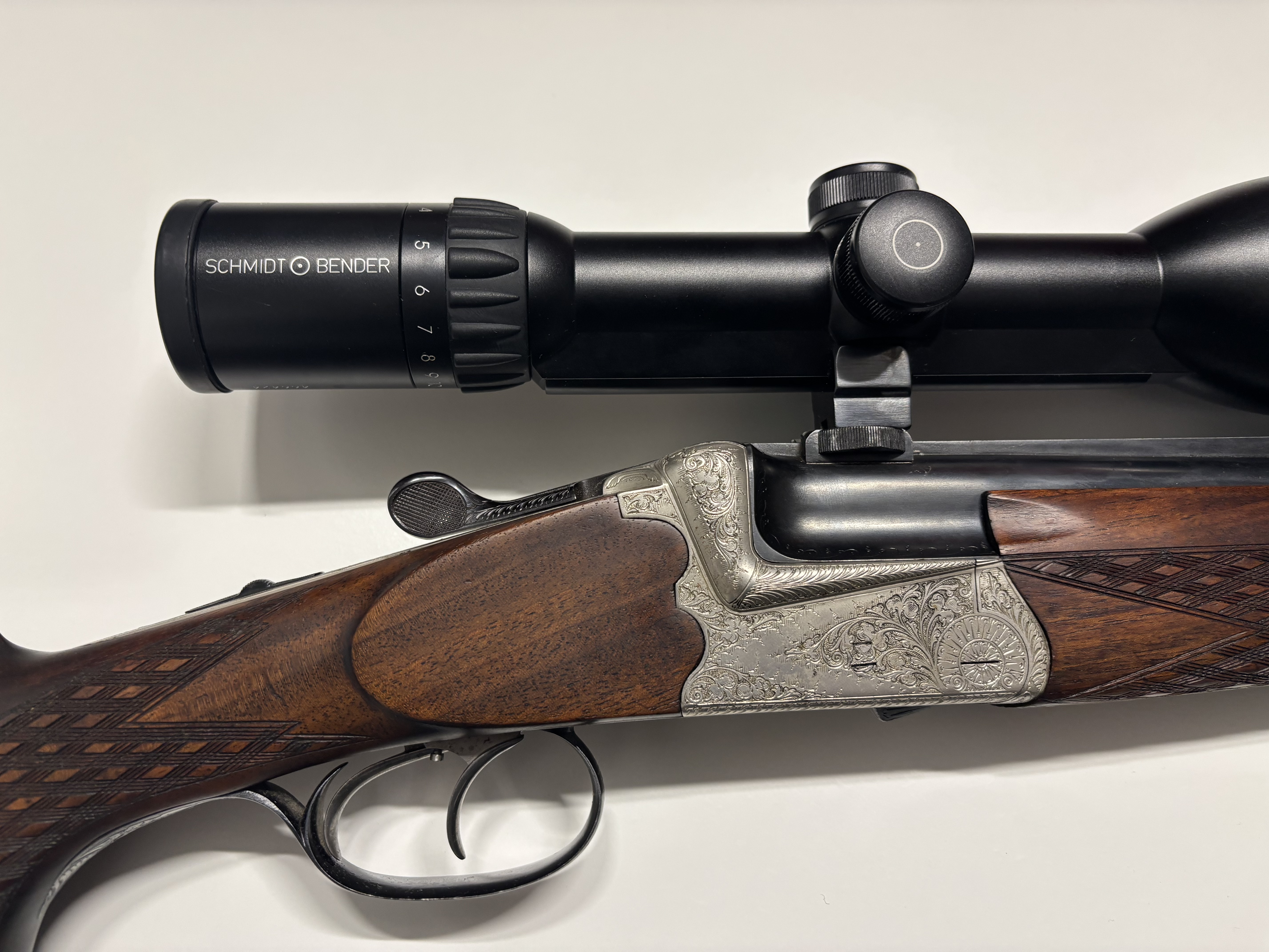 Zum Verkauf steht eine hochwertige Fehrlacher Bockbüchsflinte (BBF) aus der Werkstatt von Josef Hambrusch, gefertigt in Ferlach, bekannt für erstklassige Handwerkskunst, Präzision und edle Schäftungen.