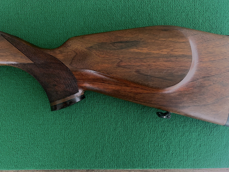 Zur Versteigerung steht ein sehr schöner Schaft aus Nussbaumholz, für eine Repetierbüchse (Kaliber .30-06 Springfield ) des Herstellers “ Sauer & Sohn “ Modell 80/90.