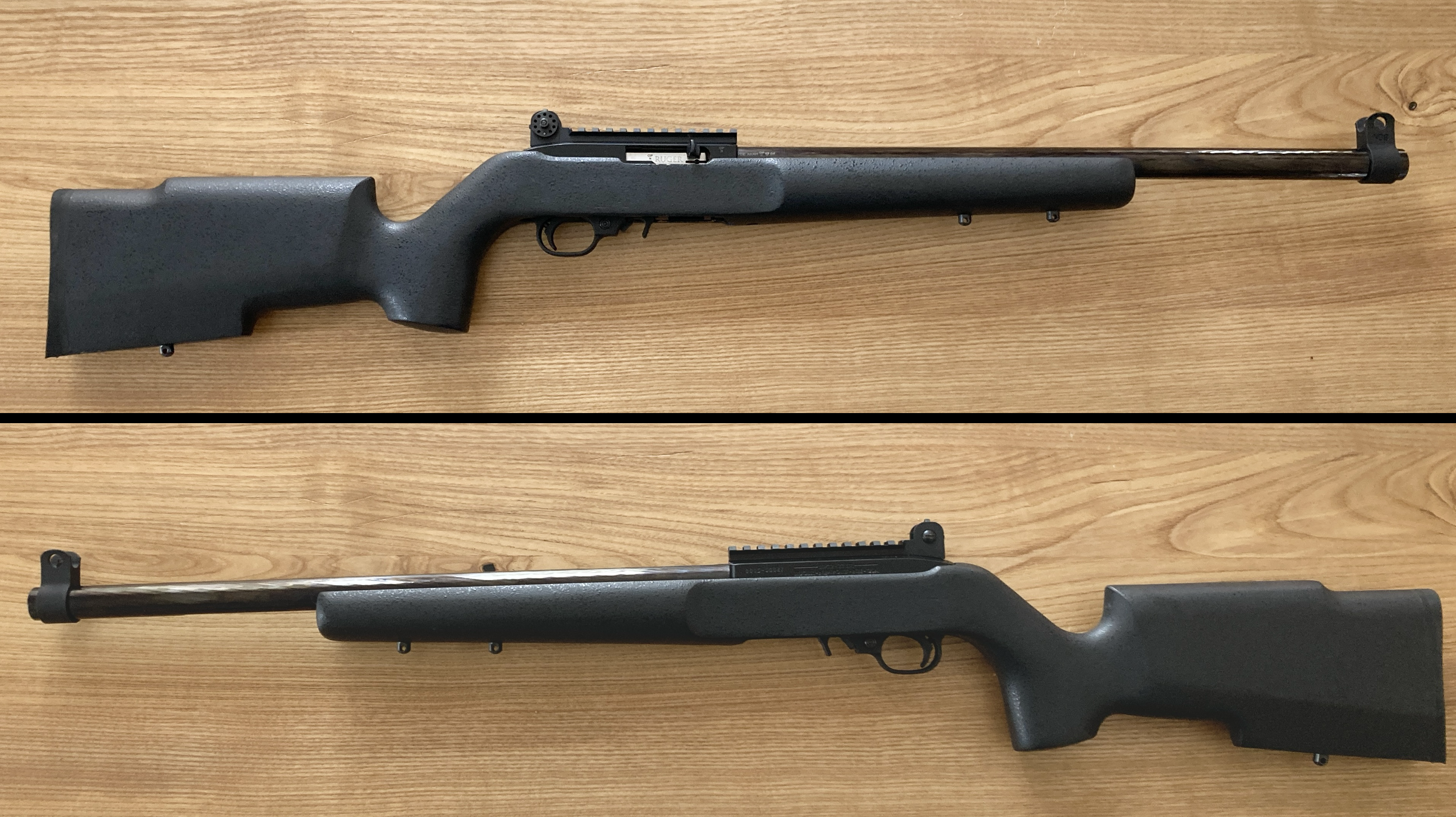 Die 10/22 ist in einem Boyds Holzschaft mit schwarzer Lackierung. Diese 10/22 ist nicht gebettet o.ä., daher noch alles offen, was mit diesem Schaft angestellt wird.