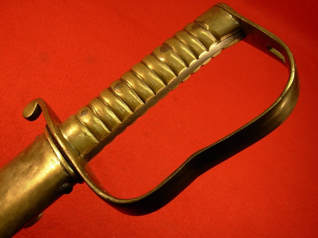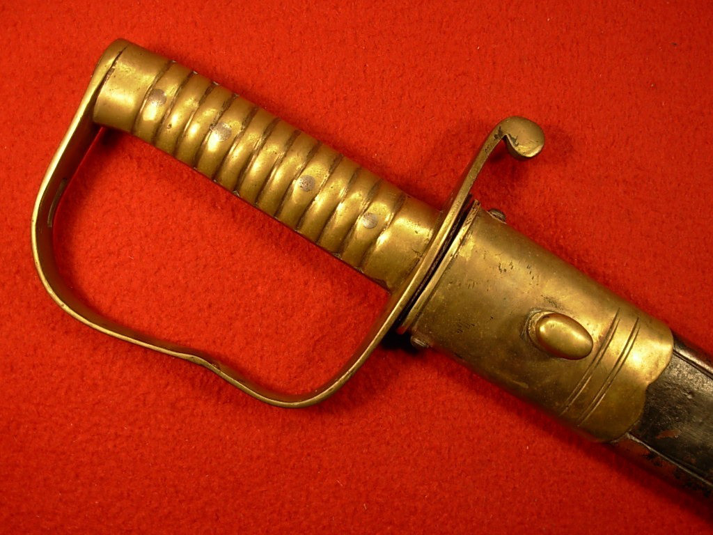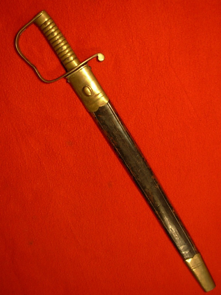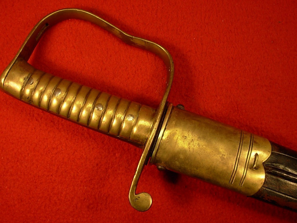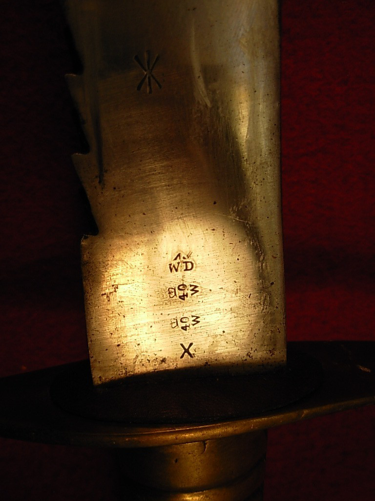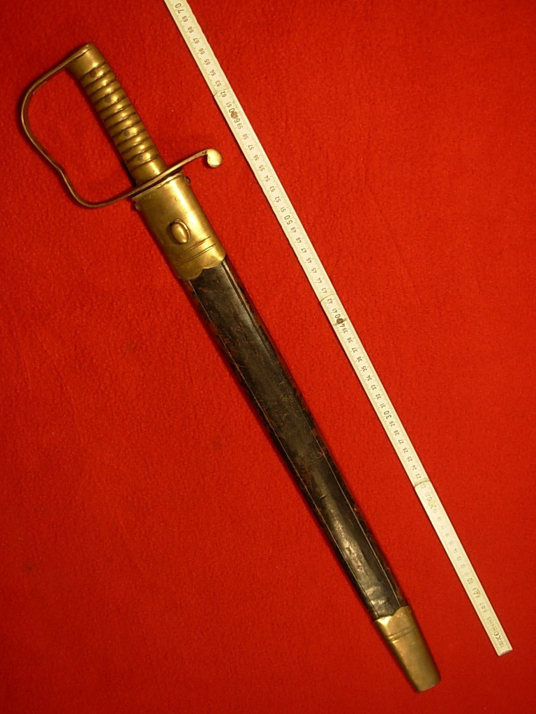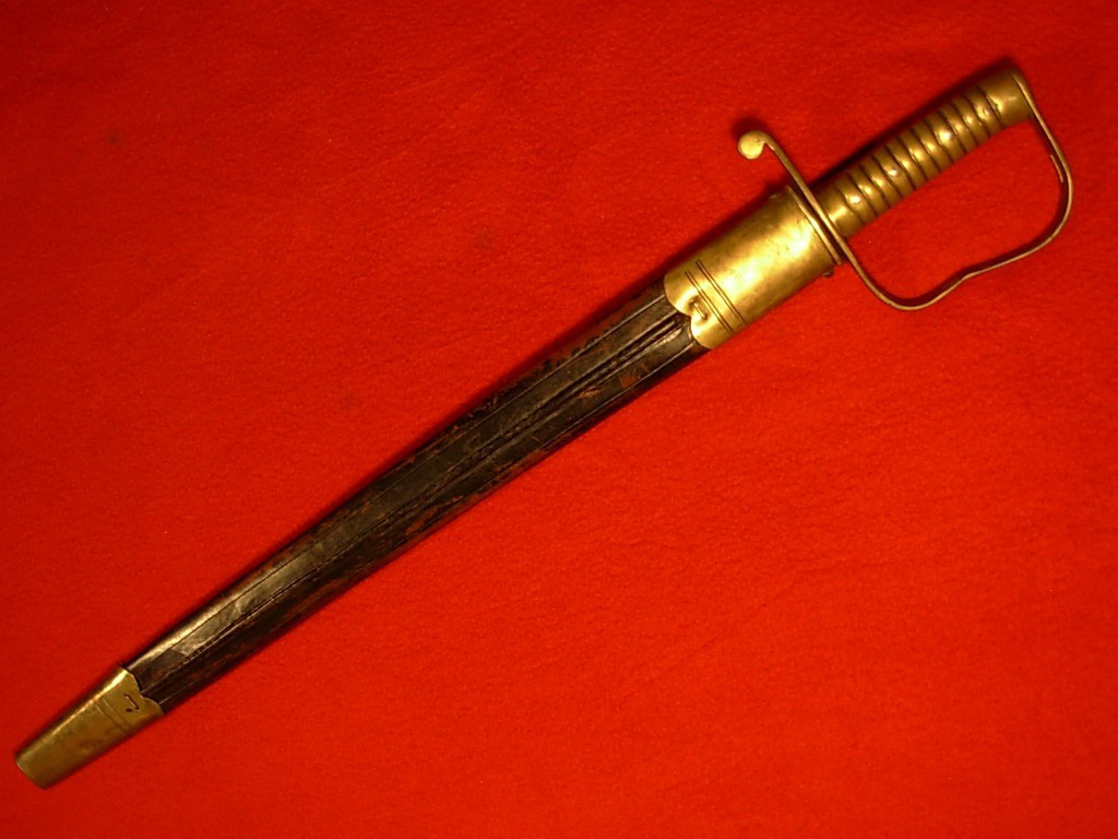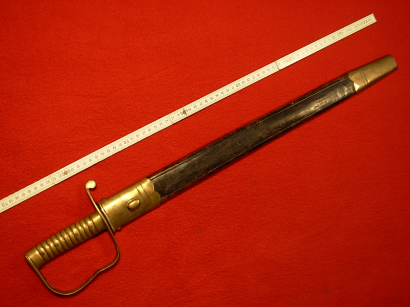 Faschinenmesser mit Sägerücken – England ? – Lederscheide mit Messingbeschlägen – Klinge gestempelt –