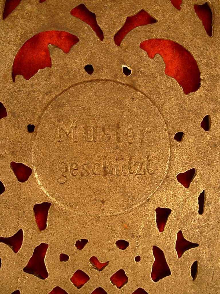 Originaler Bügeleisen Ständer – schönes Ornament – Unterseite gestempelt –