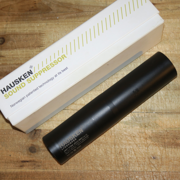 Angeboten wird ein original Hausken JD224 XTRM Schalldämpfer im Kal. 30 (passt 308 Win, 30-06 etc.) und mit M15x1 Gewinde.
