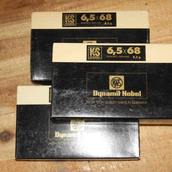 Angeboten werden 50 Patronen RWS 6,5x68 8,2g KS - Ein Los!
