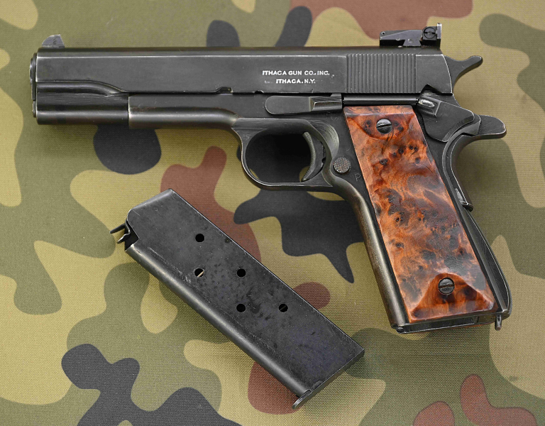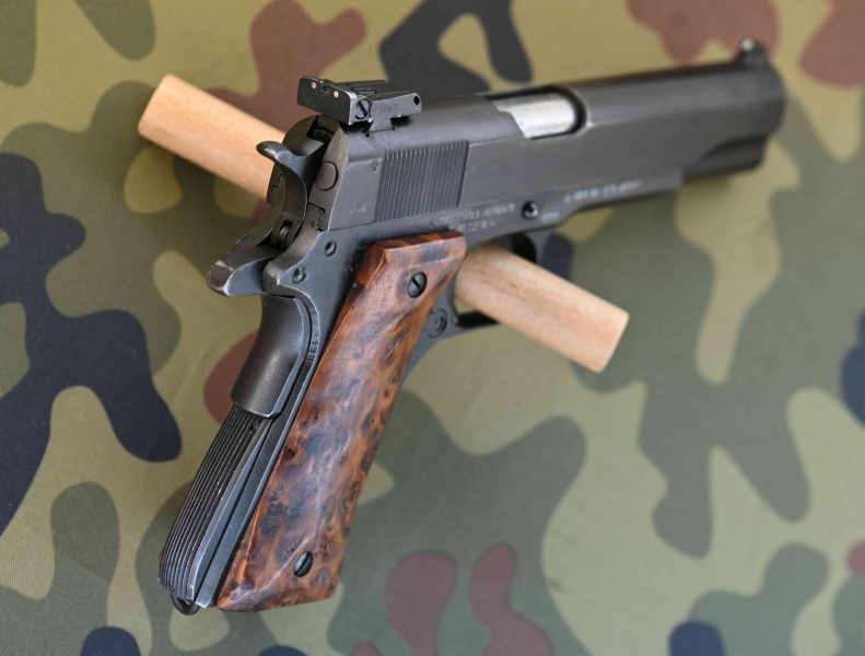 Halbautomatische Pistole, Selbstladepistole, Militärpistole, Sportpistole auf Basis der Militärwaffe Colt 1911 A1-Armeepistole, Ordonnanzwaffe der US-Army von 1943 im sehr schönen Zustand!!!
