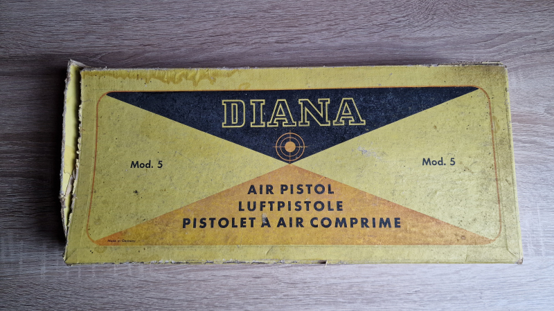 Ich verkaufe eine Luftpistole Diana Mod. 5, Kaliber 4,5mm. Die Luftpistole ist in einem guten Zustand mit leichtem Flugrost am Lauf. Ein Sammlerstück aus den vor 70er-Jahren. Sie lässt sich leicht spannen und auslösen. Der Originalkarton ist dagegen schon etwas mitgenommen. Den Zustand der Dichtungen kann ich nicht beurteilen. Versand mit Alterssichtprüfung/Altersnachweis erforderlich. - Privatverkauf - der Verkauf erfolgt unter Ausschluss jeglicher Gewährleistung.