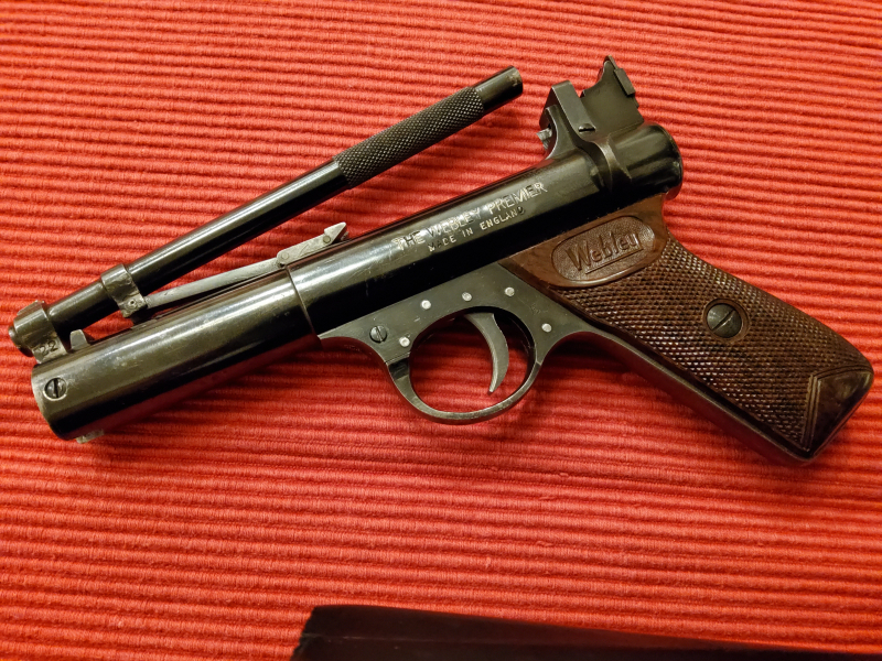 heute noch einmal etwas historisches, ich biete ich euch eine original WEBLEY PREMIER - Druckluftpistole . Die Webley PREMIER ist eine massive Druckluft-Pistole. Die Waffe ist aus grauer Vorzeit und ein massives und robustes Exemplar!