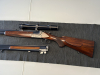 Zum Verkauf steht eine sehr selten geführte Merkel 210 E im Kaliber 7X65 R und 16/70 Schrot. Die Waffe befindet sich dem Alter entsprechend in einem sehr guten Zustand. Buntgehärtetes Stahlsystem mit Arabesken Gravur. Die Waffe verfügt über eine sehr schöne Maßerung des Schafholzes. Schaftlänge 37cm zum vorderen Abzug (Rückstecher). Läufe sind blank, Züge und Felder scharf. Die Waffe hat einen nummerngleichen Wechsellauf in 16/70 und verfügt über Ejektoren. An der unterseite des WL war mal die brünierung abgegriffen und wurde nachbrüniert, was aber nicht wirklich auffällt (letztes Bild). Das System Schließt saugend fest und muss sogar nachgedrückt werden, da die Schussbelastung der Waffe sehr gering ist. Das Zielfernrohr ist ein Zeiss Diavari - ZM 1,5-6X42 T*. Die Durchsicht ist klar und randscharf. Es sitzt auf einer festsaugenden wiederholgenauen SEM Montage. Die Waffe wurde so von Merkel im dazugehörigen Waffenkoffer ausgeliefert und der WL wurde nicht nachträglich eingepasst. Leider löst sich langsam der Stoff an der Polsterung ab. Wenn man möchte, kann man dies jedoch wieder reparieren lassen. Mich hat es nicht gestört.