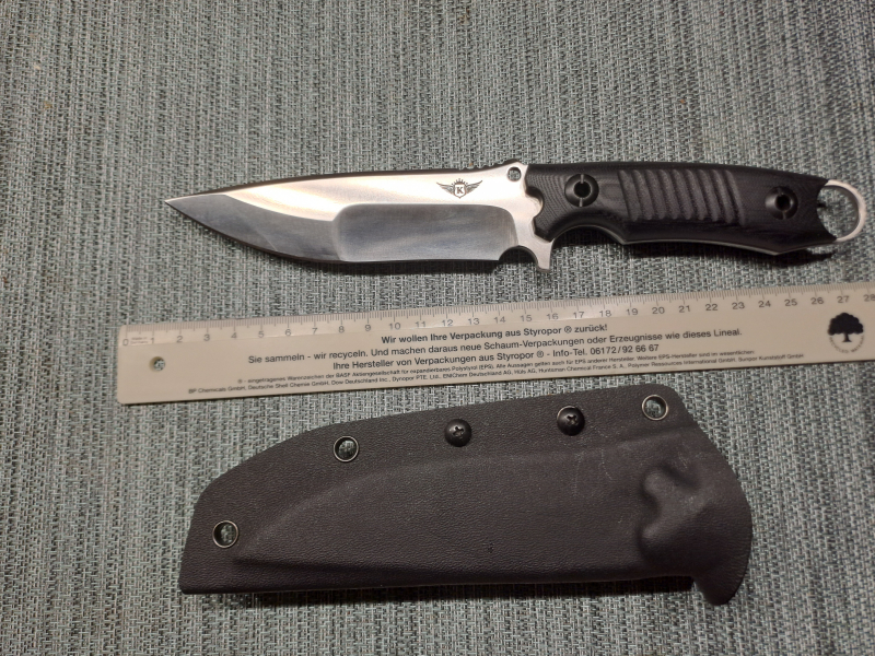 Klasse Fighter. D2 Stahl. Schöne hohlgeschliffene Klinge. Fette Kydexscheide
