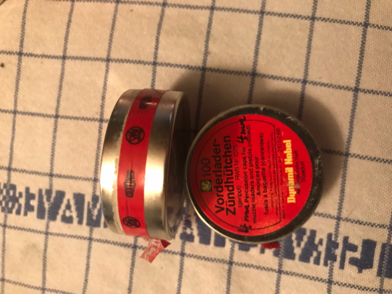 Von Privat aus einem Nachlass - 2 Dosen mit je 100 Vorderlader Zündhütchen 1075 gerippt - beide Dosen noch versiegelt - Privatauktion - daher keine Rücknahme - Versandpauschale 6 Euro -