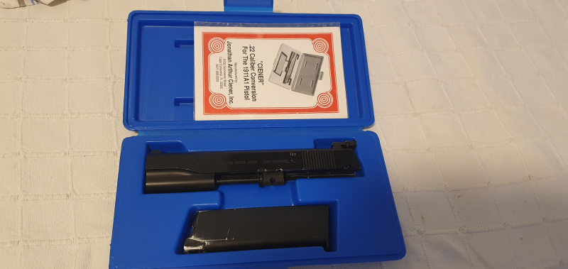 Moin, biete ein CIENER 22 Kaliber Conversion Kit für eine 1911 A1 45 ACP an. Das Wechselsystem ist gebraucht und in einem sehr guten Zustand. Das System lief auf meiner 1911 A1 ohne Störung. Fotos sind kein Problem. Der Versand geht zu Lasten und auf Risiko des Käufers keine Garantie und Rücknahme. Ein Berechtigung ist erforderlich. Verkauf nur in Deutschland. Achtung! Kein Versand in die EU