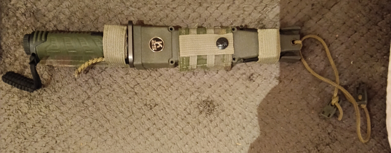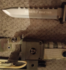 verkaufe Hier ein Outdoor-, Survivalmesser BÖKER THUNDER II mit integrierten Equipment. Das Messer ist ca. ein Jahr alt und wurde bisher nicht Outdoormässig oder anderweitig benutzt. Das Messer besitzt eine Titaniumbeschichtete Klinge und Griff eine Hülse mit integriertem Equipment wie Angelhaken, Nadel, Streichhölzer. Der Griff wird mit einen Drehverschluss geschlossen welcher einen integrierten Kompass besitzt. In der Scheide des Messers befindet sich zudem noch ein zusätzliches kleineres Messer welches in einer Vorrichtung mit einen Gummi für eine Schleuder/Zwille sitzt und in die Scheide eingeschoben wird. Die Wurfarme für die Schleuder befinden sich anklappbar an der Unterseite der Scheide. Der Gummi wird also auf die ausgeklappten Wurfarme geschoben.